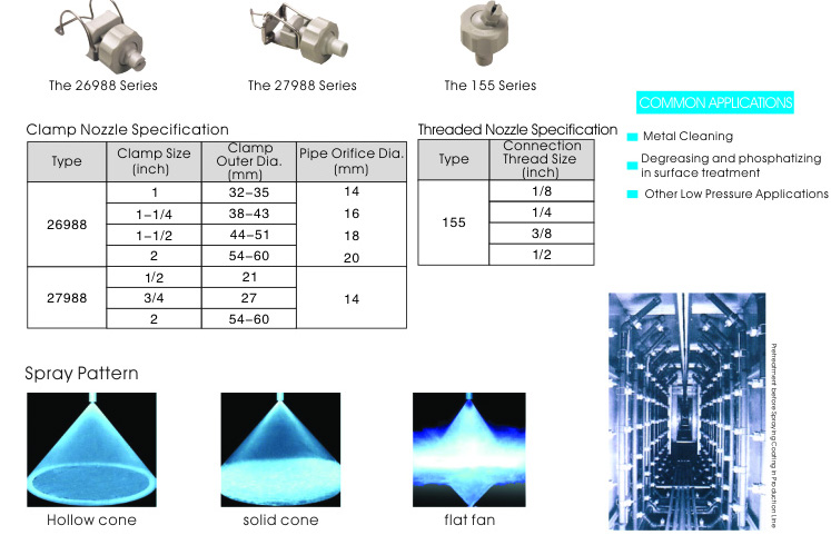 Adjusting ball-Type Nozzle สามารถที่จะเลือกหัวฉีดให้เหมาะกับงานได้แก่ Hollow cone,Solid cone หรือ Flat fan